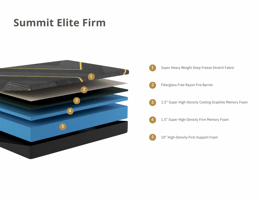 The Summit Elite Mattress is designed for sleepers who want premium comfort, advanced cooling, and the ability to choose the perfect feel. Built with high-density foams and breathable stretch fabric, the Summit Elite adapts to your sleep style while maintaining lasting support night after night.